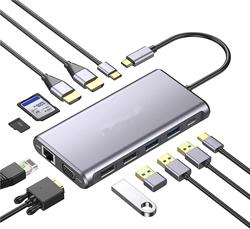 12in1USBCハブMCYミニハブ4KデュアルHDMIVGA1080Pトリプルディスプレイ100WPDRJ45ウィンドウのMacBookPro Del l HPと互換性があります